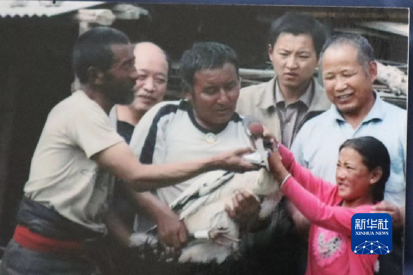在西合道的相冊里,有一張多年前的老照片:遼闊草原上,這位面色黝黑、身形健碩的藏族漢子,一手環(huán)抱黑頸鶴、一手扶住它的脖子,就像護著自家的小孩。