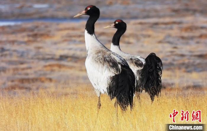黑頸鶴頻繁“駐足”中國“鹽湖城”