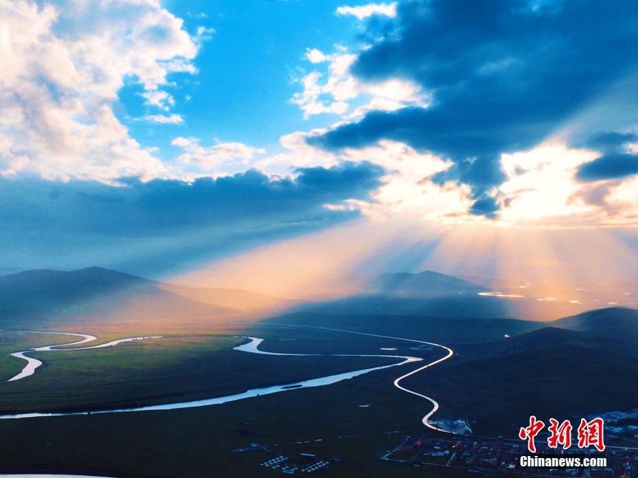 日前,四川阿壩州若爾蓋大草原在一陣清涼中雨后,夕陽(yáng)突破云層,出現(xiàn)了彩虹和丁達(dá)爾光相映成畫(huà)的奇妙景象。微風(fēng)拂過(guò),泥土和雨水的清香撲鼻,群山籠煙霞,河流蜿蜒過(guò),東有七彩虹,西邊落日雄。鄧政琪 攝