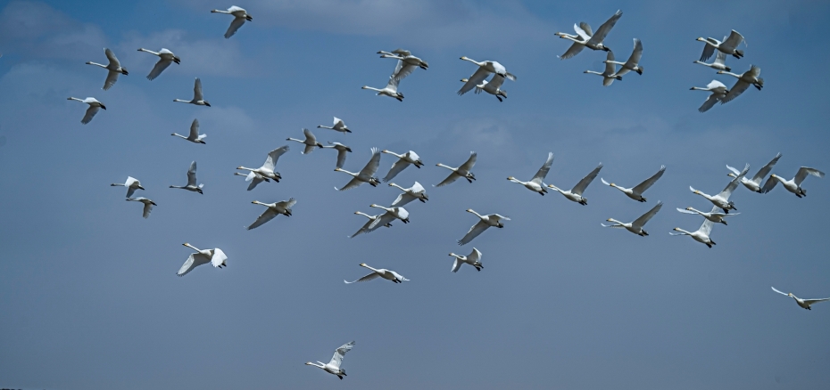 隨著天氣轉(zhuǎn)暖,青海省海南藏族自治州共和縣塘格木鎮(zhèn)更尕海又迎來了一大批候鳥。大天鵝,黑頸鶴以及白鷺、大雁、赤麻鴨等10多種候鳥回歸,它們一會(huì)兒在天空中飛翔,一會(huì)在岸邊棲息,一會(huì)兒又沖向水中捉魚覓食,在這綠水青山的環(huán)境里好不愜意。共和縣融媒體中心 供圖