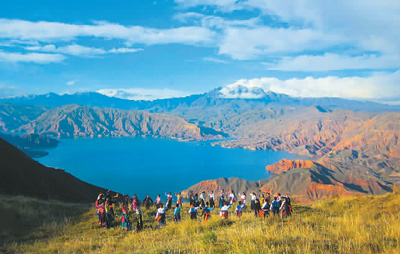 四處可見的蒼翠林木、絢麗的奇花異草,被湛藍(lán)湖水包圍著的丹霞群峰……坎布拉景區(qū)的如詩(shī)畫卷,令每一個(gè)游客流連忘返?!斑@里真的很美,隨手一拍就是大片。”攝影愛好者、浙江游客李先生說,“這是我第二次來這里了,坎布拉天藍(lán)、水碧、山青,別有一番風(fēng)味,我挺喜歡的,等暑假我想帶孩子們?cè)賮砜纯??!?/p>