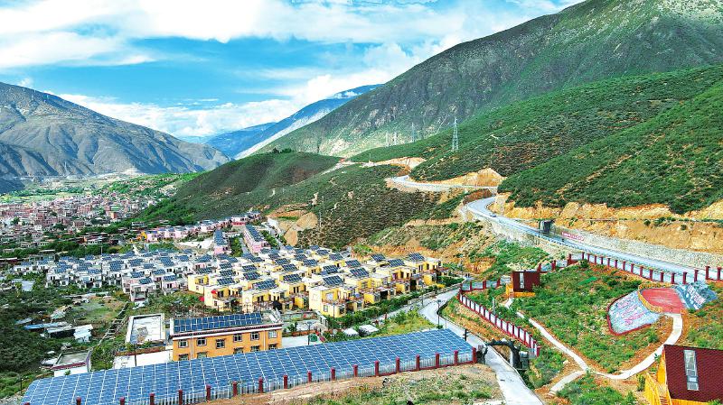 這里是巴塘縣實(shí)施地巫鎮(zhèn)易地扶貧搬遷集中安置項目時打造的新村。曾經(jīng),地巫鎮(zhèn)中真、甲雪、壩伙3個村位于離縣城149公里的大山深處,平均海拔3600米,地質(zhì)條件較為惡劣。如今,村里的群眾整體搬遷到“桃源地塢”新村,新房水、電、路等基礎(chǔ)設(shè)施一應(yīng)俱全。家家戶戶的屋頂上,還有雙流區(qū)捐建的分布式村級光伏扶貧電站,這讓村民們又多了一份收入。