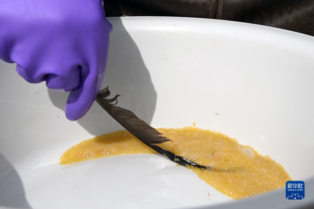 6月29日,在青海湖裸鯉沙柳河泉吉河增殖實(shí)驗(yàn)站,工作人員把收集的湟魚受精卵放入孵化盒。新華社記者 范培珅 攝