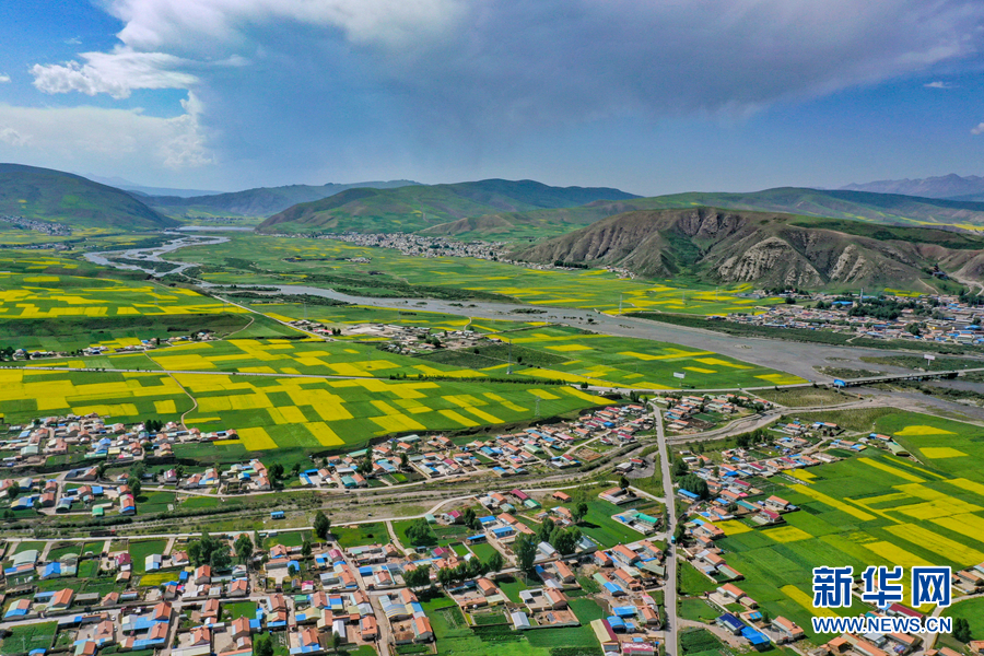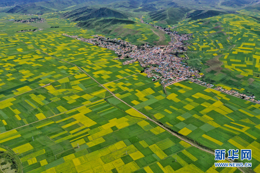 航拍門(mén)源縣油菜花海。新華網(wǎng) 宋忠勇 攝