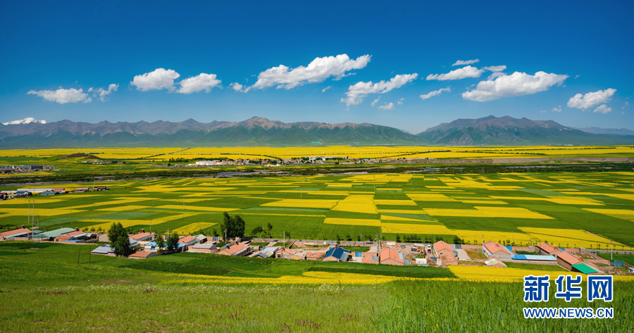 圖為門(mén)源縣油菜花海。新華網(wǎng) 宋忠勇 攝
