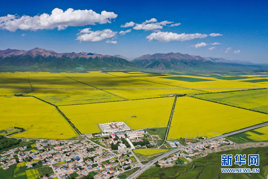 青海門源:高原油菜花開鋪就“金色花海”