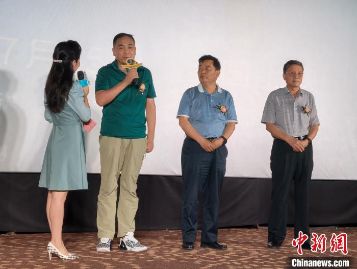 圖為總導(dǎo)演李曉、主演葛玉修,參與電影創(chuàng)作的廣電協(xié)會會長韓青峰接受采訪。祁增蓓 攝