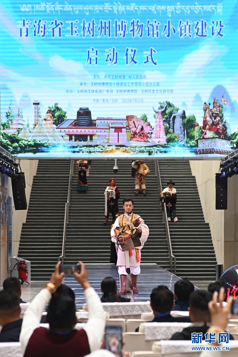 這是17日拍攝的青海省玉樹州博物館小鎮(zhèn)建設(shè)啟動(dòng)儀式現(xiàn)場(chǎng),模特正在展示博物館藏品。新華社記者 范培珅攝