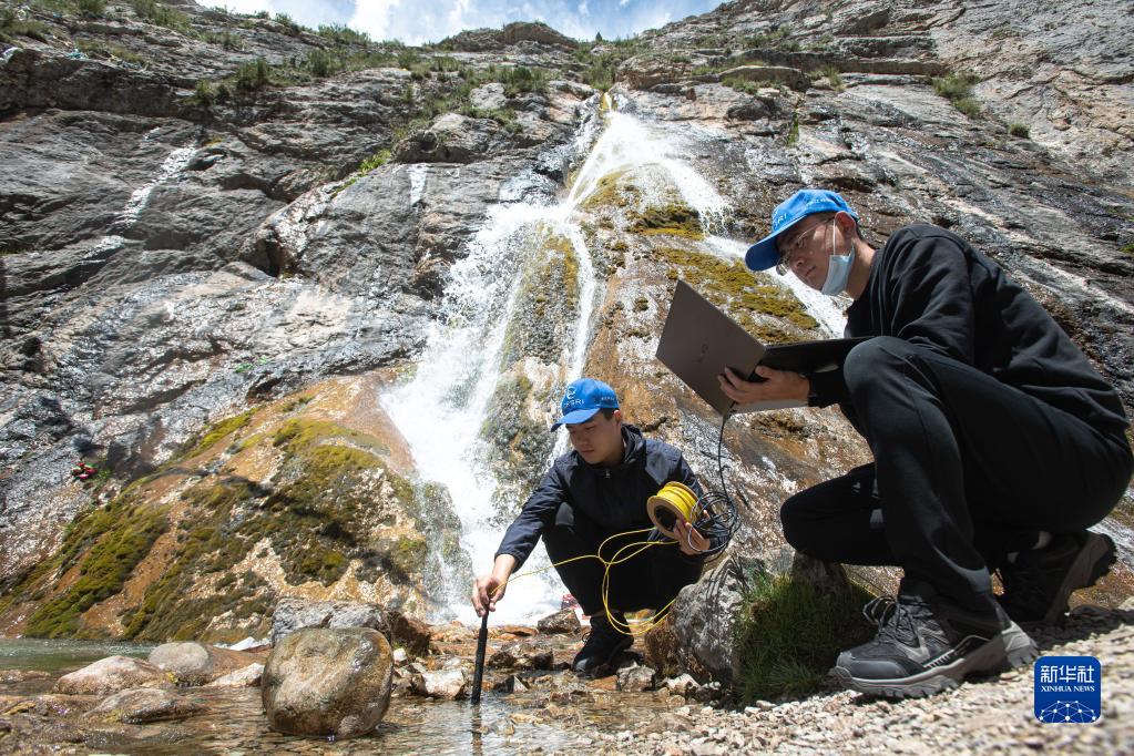 7月24日,長江科學院科考隊員在瀾滄江源區(qū)的雜多進行科考工作。新華社記者 肖藝九 攝