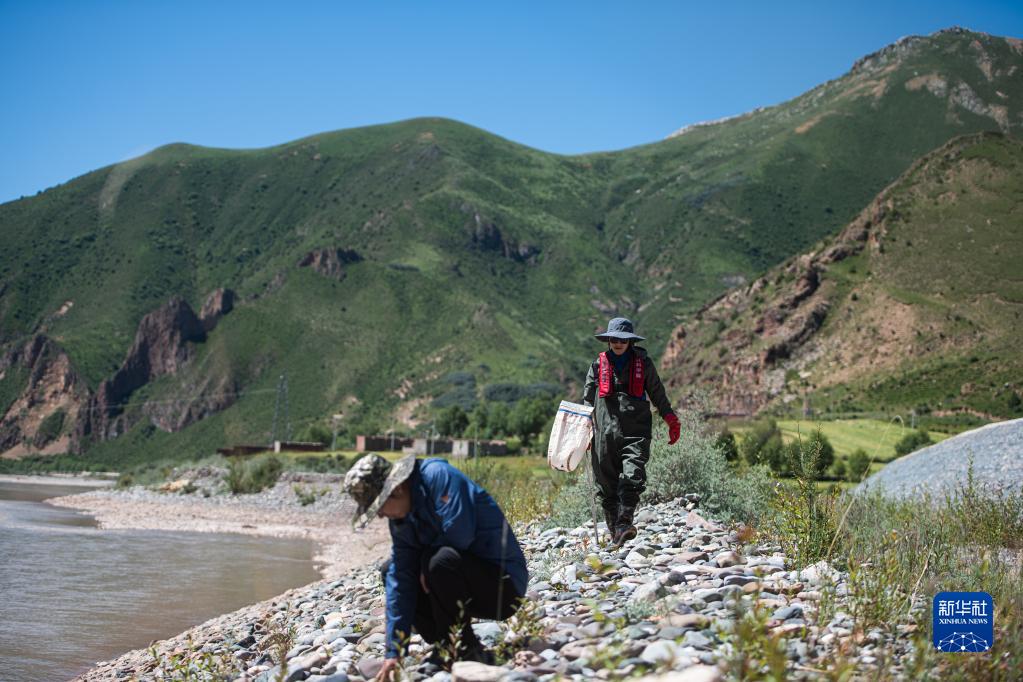 7月24日,長江科學院科考隊員劉晗(右)在瀾滄江源區(qū)的扎曲采集魚類樣本。新華社記者 肖藝九 攝