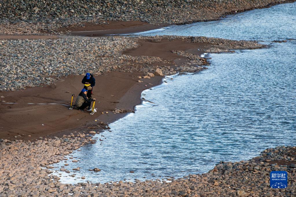 7月24日,長江科學院科考隊員李魯?shù)ぃㄓ遥┡c劉晗在瀾滄江源區(qū)的扎曲進行科考工作。 新華社記者 肖藝九 攝