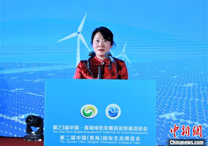 圖為海南州政府副州長(zhǎng)獨(dú)金萍進(jìn)行投資環(huán)境說(shuō)明推介?!☆佨?攝