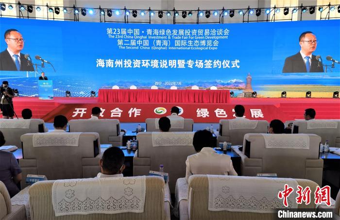 圖為海南藏族自治州投資環(huán)境說(shuō)明暨專場(chǎng)簽約儀式現(xiàn)場(chǎng)。祁增蓓 攝