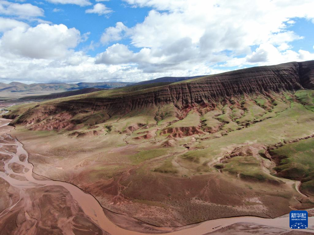 這是7月18日在可可西里拍攝的“紅山脈”(無人機照片)。新華社記者 張龍 攝