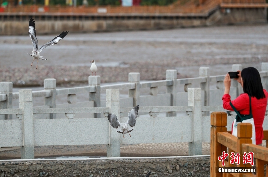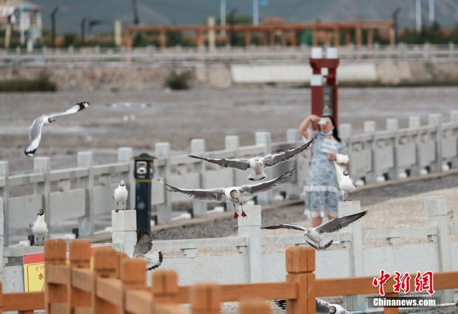8月11日,青海省海北藏族自治州剛察縣,沙柳河國(guó)家濕地公園內(nèi)的大量水鳥(niǎo)吸引游客。中新社記者 賈天勇 攝