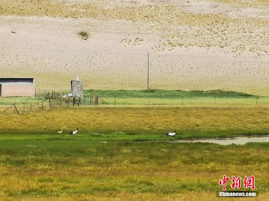 黑頸鶴頻繁“駐足”中國“鹽湖城”