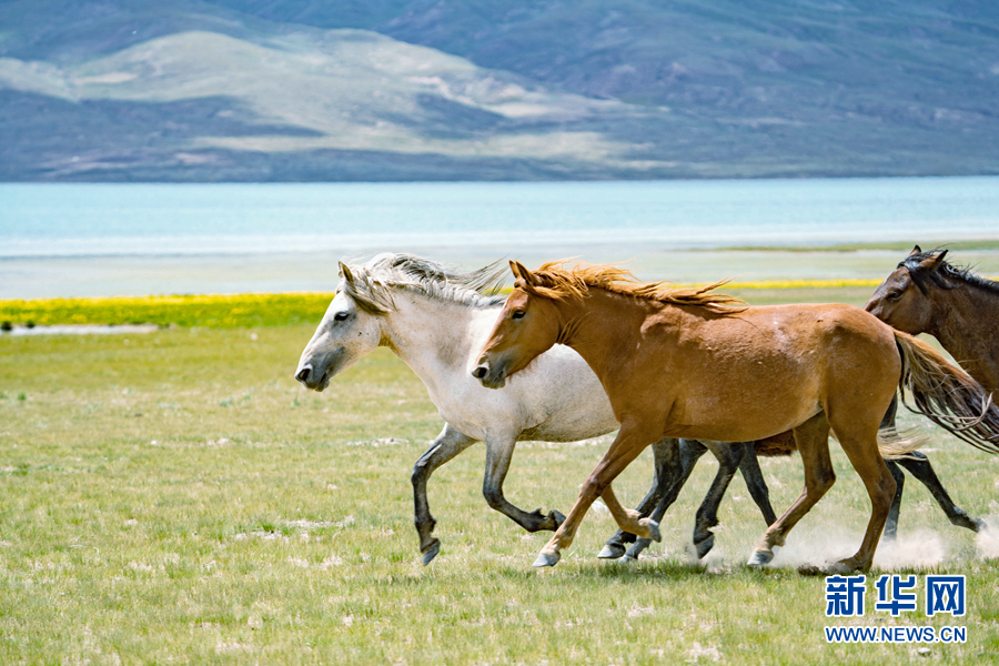 阿拉克湖國家濕地公園內(nèi),奔跑的駿馬。
