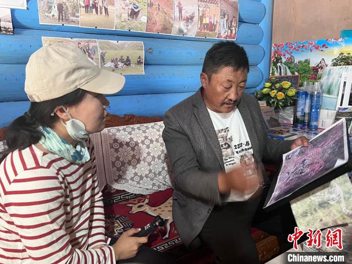 “作為一名攝影記者,能來到三江源國(guó)家公園采訪拍攝,非常難得。今天我們跟著當(dāng)?shù)氐哪撩裣驅(qū)ё穼ち艘吧鷦?dòng)物的足跡,看到了巖羊,還有旱獺,雖然沒能看到雪豹有些遺憾,但是在牧民的家里也看到了他們?cè)?jīng)拍攝到的雪豹照片,非常的震撼?!瘪T永斌說。