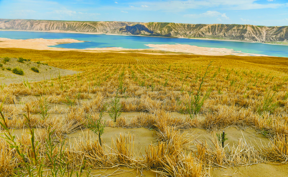 整齊排列的草方格,隨風搖曳的烏柳樹,生機勃勃。青海省海南藏族自治州共和縣龍羊峽庫區(qū)北岸——曾經的不毛之地,如今已煥然一新,一條條綠色長廊盡顯生命的力量。自生態(tài)項目建設以來,共和縣通過草方格沙障與烏柳插桿水鉆造林、檸條直播及沙蒿撒播相結合等方法進行荒漠化治理,造林成活率達到90%以上,創(chuàng)造出龍羊峽北岸的“綠色奇跡”。