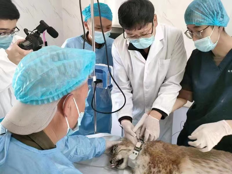 青海野生動物救護繁育中心工作人員正在救助猞猁。(圖片由青海省林業(yè)和草原局提供)
