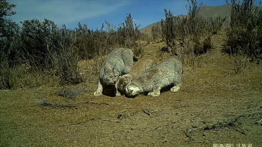 這是在祁連山國家公園青海片區(qū)拍攝到的三只猞猁。(圖片由祁連山國家公園青海省管理局提供)