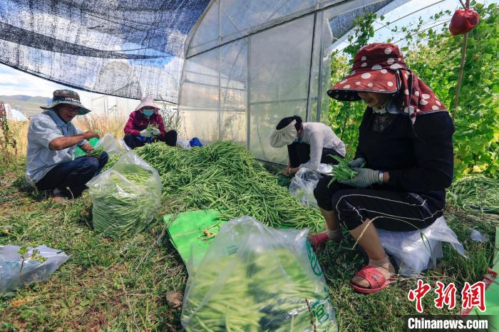 八月中旬,在四川省阿壩藏族羌族自治州壤塘縣的熱布卡蔬菜基地,五月種植的第一批四季豆(學(xué)名菜豆,下同)正值豐收。50歲的陳老會年初從云南來到四川壤塘工作,她和工友們將剛采摘的四季豆篩選裝袋,近五十斤重的包裝袋整齊鋪滿地面。“我們下午采摘的蔬菜,第二天早上就能出現(xiàn)在成都的市場上?!彼^也不抬地忙著手中的活。