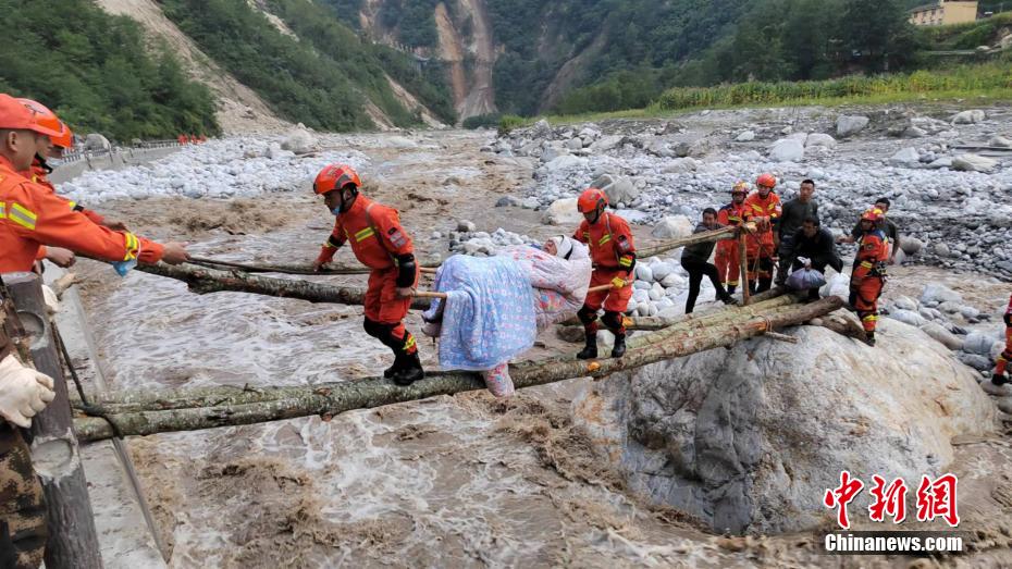 森林消防員抬著受傷群眾過河。四川森林消防供圖 攝