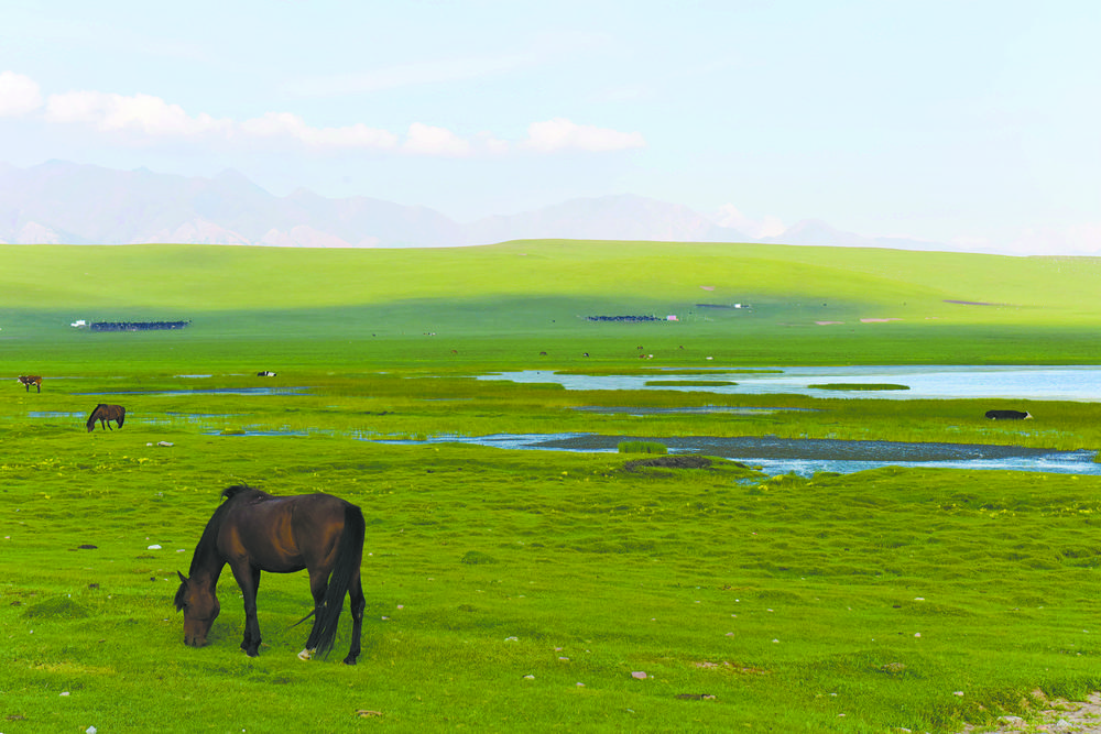 走進祁連山南麓,遼闊草原鋪展在天地間。成群的牛羊猶如散落的一串串黑白珍珠??粗矍暗木跋?,牧民扎拉加感慨萬千。
