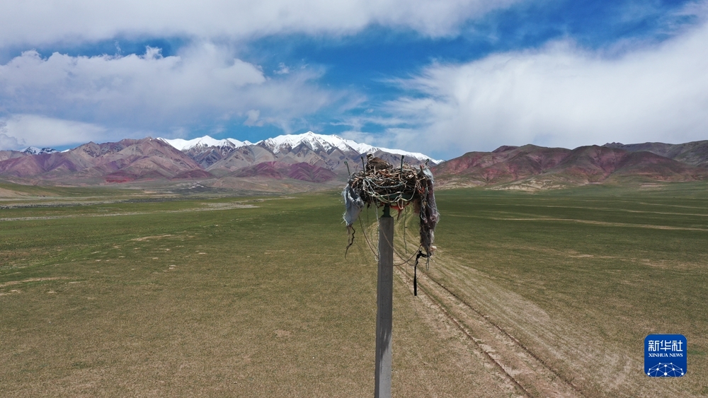 記者在草原上,不時能見到一根根五六米高的水泥桿,桿上筑有鳥巢或六邊水泥方臺。當地工作人員介紹,這是人工架設的“招鷹架”,吸引老鷹等猛禽前來棲息、筑巢,達到控制鼠群的目的。