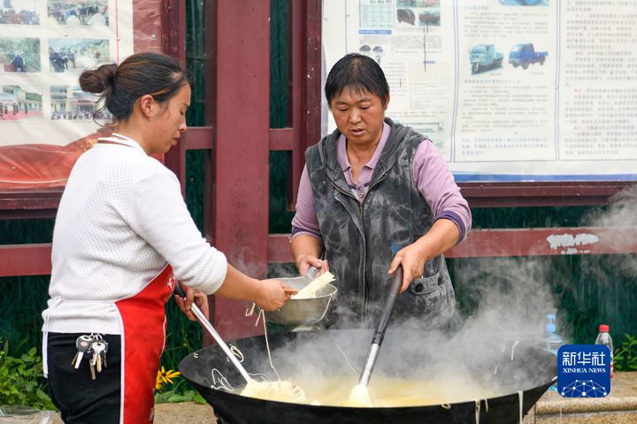 9月6日,在位于四川省雅安市石棉縣王崗坪鄉(xiāng)挖角村村委會的安置點,村民在安置點內(nèi)架起鍋灶,生火做飯,為安置點里的鄰里鄉(xiāng)親準備餐食。