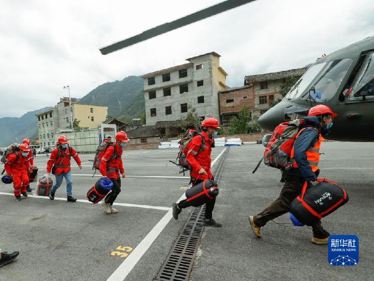 9月7日,在四川省甘孜州瀘定縣磨西鎮(zhèn),四川省冶勘設(shè)計集團(tuán)有限公司的6名調(diào)查隊員攜帶裝備搭乘直升機(jī)前往海螺溝景區(qū)開展地質(zhì)災(zāi)害應(yīng)急排查工作。新華社記者 沈伯韓 攝