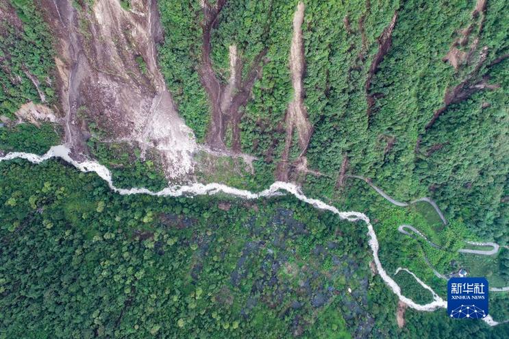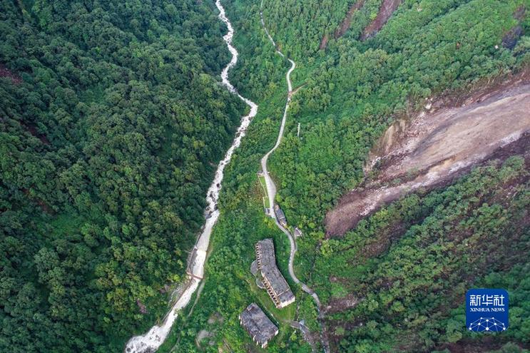 這是9月7日拍攝的海螺溝景區(qū)一號營地附近的崩塌災(zāi)害現(xiàn)場(右側(cè)部分)(無人機(jī)照片)。新華社發(fā)(四川省冶勘設(shè)計集團(tuán)有限公司供圖)