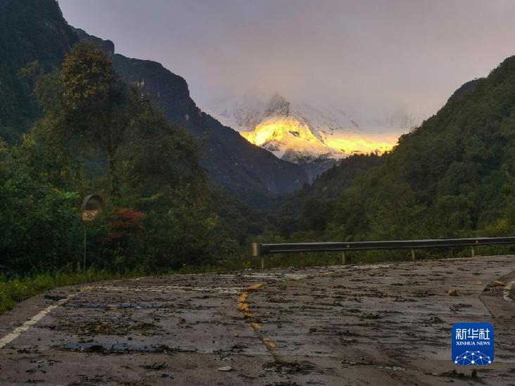 這是9月10日拍攝的海螺溝景區(qū)內(nèi)部道路和貢嘎雪山側(cè)峰。新華社發(fā)(四川省冶勘設(shè)計集團(tuán)有限公司供圖)