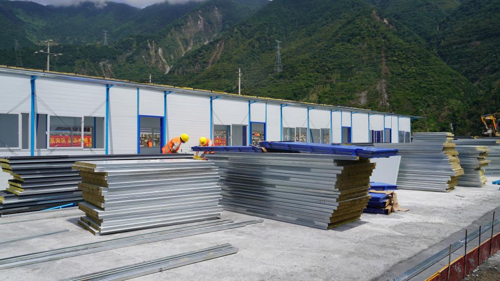 在得妥鎮(zhèn)天池山村繁榮集中過渡安置點工地里,200多名施工人員正在抓緊進(jìn)行安置點的板房安裝?!澳壳拔覀円淹瓿?20套板房安裝,預(yù)計受災(zāi)群眾可于10月初入住?!笨偝邪鼏挝蝗A西集團(tuán)四川省建筑機械化工程有限公司項目負(fù)責(zé)人王偉介紹,該安置點還將配備公共衛(wèi)生間、公共浴室、廚房、健身器材等設(shè)施,為受災(zāi)群眾在過渡安置期間創(chuàng)造安全便利的生活條件。