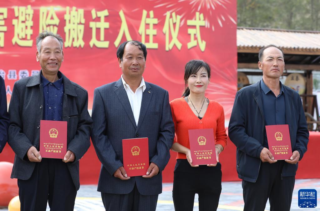9月15日,在甘肅省武威市天祝藏族自治縣生態(tài)及地質災害避險搬遷入住儀式上,祁連鎮(zhèn)116戶群眾拿到不動產權證書,入住新房。作為生態(tài)脆弱地區(qū),天??h通過生態(tài)及地質災害避險搬遷工作,嘗試解決地質災害威脅和發(fā)展受限問題。