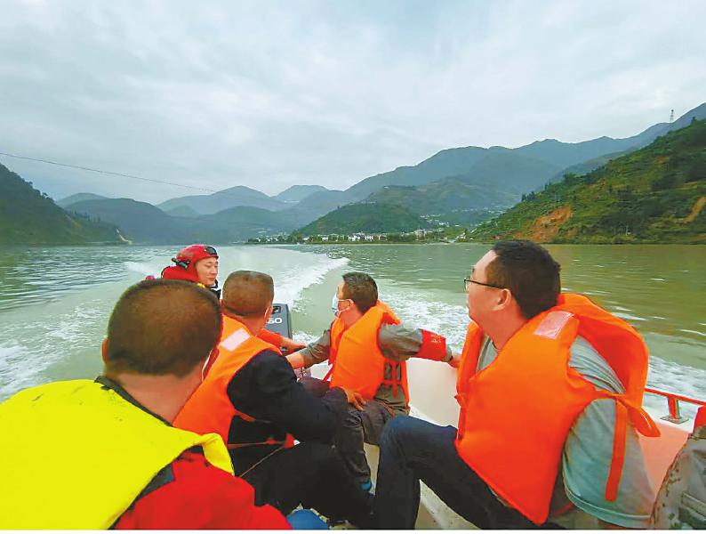 雅安市統(tǒng)戰(zhàn)干部經(jīng)水路前往救災(zāi)一線。