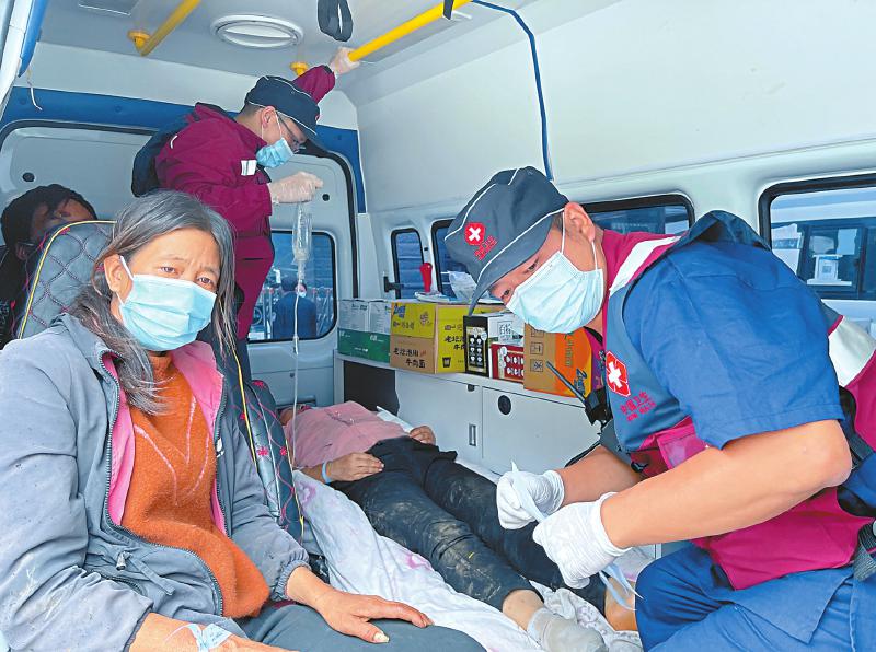 民盟盟員、骨傷專家王振龍參與轉(zhuǎn)運(yùn)地震傷員。
