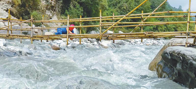 四川省青年應急志愿服務總隊雷波大隊隊員們搭建鋼架橋。本版圖片均由受訪者提供