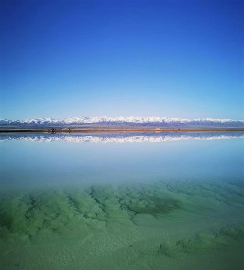 位于青海省海西蒙古族藏族自治州烏蘭縣的茶卡鹽湖鹽層開始結(jié)晶,湖水逐漸純凈,平靜的湖水如同天然鏡面,倒映著湛藍(lán)天空與皚皚雪山,呈現(xiàn)出一幅別樣高原秋日美景。