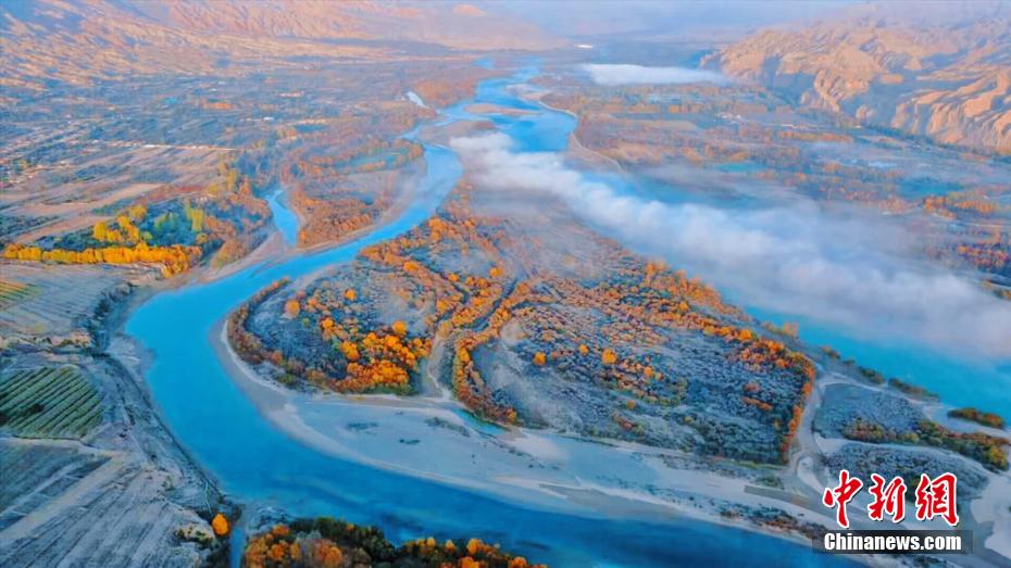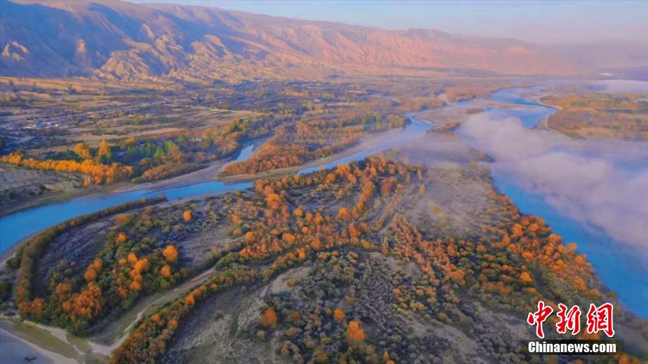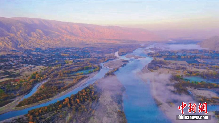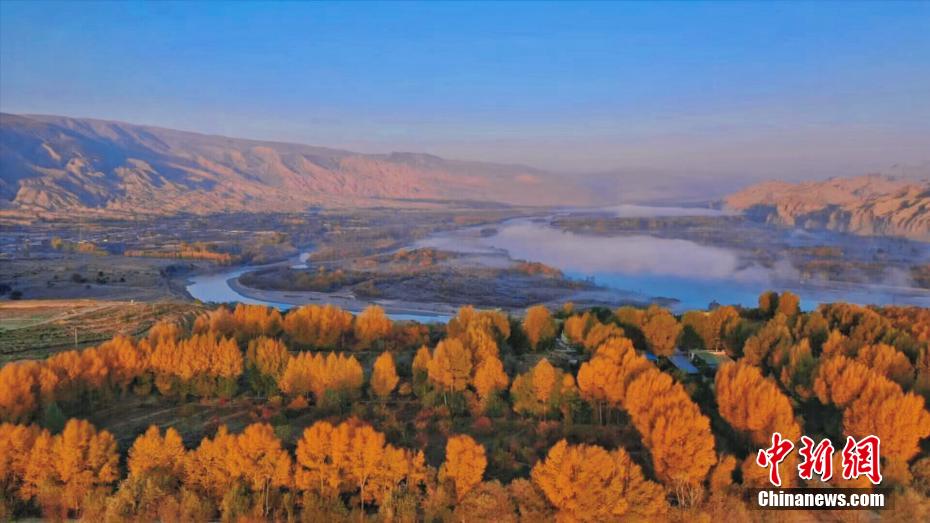 深秋時(shí)節(jié),享有“天下黃河貴德清”美譽(yù)的青海省貴德縣秋意正濃。黃河岸畔,一層層薄霧如飄紗籠罩河面,碧波蕩漾的黃河水與兩岸樹林、農(nóng)田、丹霞地貌交相輝映,美景如畫。青海省是中華民族母親河黃河的發(fā)源省,黃河流經(jīng)貴德76.8公里。貴德縣融媒體中心 供圖
