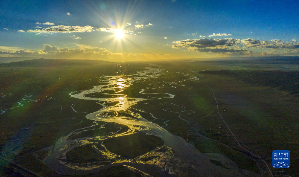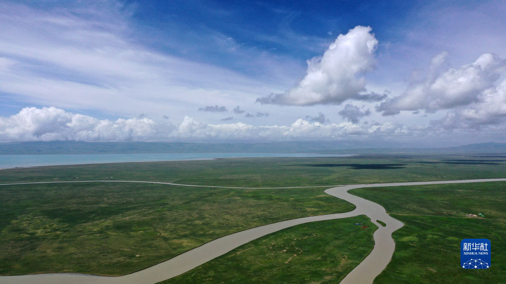 這是青海湖布哈河濕地一景(2020年7月19日攝,無(wú)人機(jī)照片)。新華社 楊濤 攝