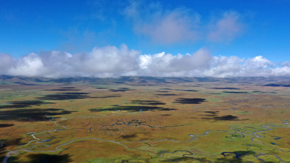 深秋,從空中俯瞰平均海拔3500多米的瑪曲濕地,大大小小的湖泊如珍珠般灑落在草原上,上萬只候鳥在這里安心度過繁殖季,準(zhǔn)備飛往南方過冬。