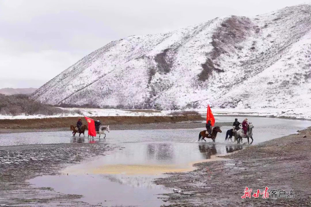 中國西藏網(wǎng)訊 “今天,我們要到吉勒合村給牧民群眾宣講黨的二十大精神。路途比較遠(yuǎn),也不好走,大家要拿出最好的狀態(tài)……”在甘肅省甘南藏族自治州瑪曲縣齊哈瑪鎮(zhèn)會議室,齊哈瑪鎮(zhèn)“女子馬背宣講隊”隊長班瑪卓瑪快速安排了當(dāng)天的宣講任務(wù)。冬日清晨,伴隨著清脆的馬蹄聲,在海拔3600米的瑪曲草原,宣講隊員們出發(fā)了。鮮紅的旗幟上,“黨的二十大精神走進(jìn)牧區(qū)”幾個字格外醒目。通俗易懂的語言,接地氣的比喻,讓群眾聽得聚精會神。