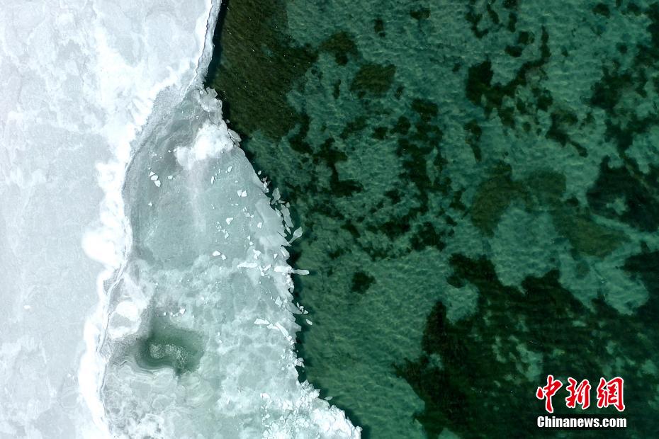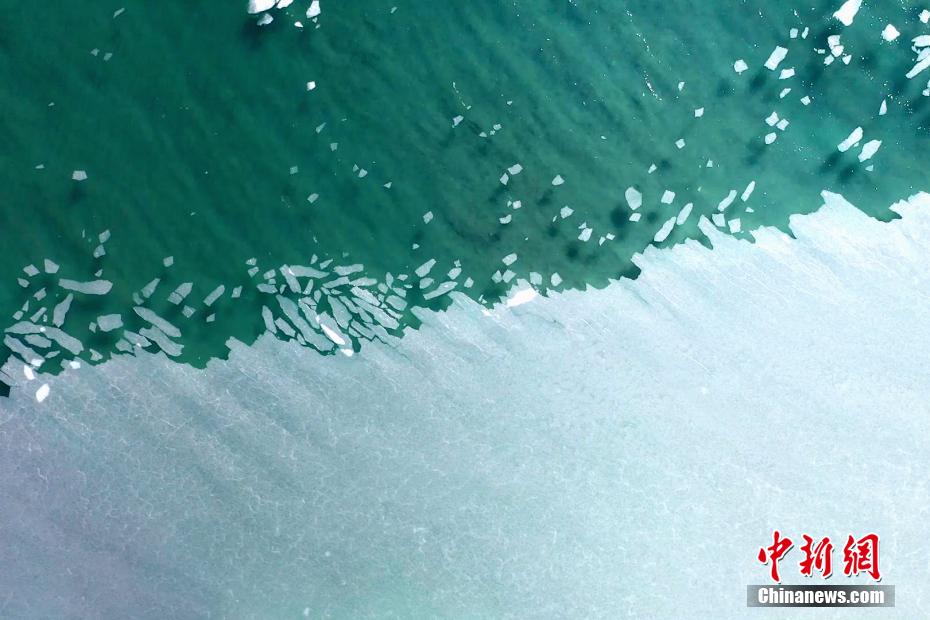 近日,素有“高原藍(lán)寶石”之稱的青海湖開(kāi)始進(jìn)入冰封期。青海湖水體周邊的零星結(jié)冰,青海湖西部邊緣、北部湖岸區(qū)、鳥(niǎo)島、青海湖斷崖等地出現(xiàn)成片結(jié)冰區(qū)。航拍畫(huà)面中可以看到湖心范圍尚有大面積未結(jié)冰區(qū)域。青海湖是中國(guó)最大的內(nèi)陸咸水湖。冬日里的青海湖,寧?kù)o而內(nèi)斂。千里冰封,宛如童話世界。封凍的湖面如同破碎的“玉帶”,形成獨(dú)特的景觀。張世偉 攝