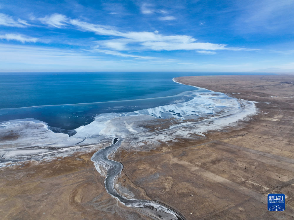 這是2022年12月9日拍攝的青海湖一角(無人機照片)。(新華社記者 張龍 攝)