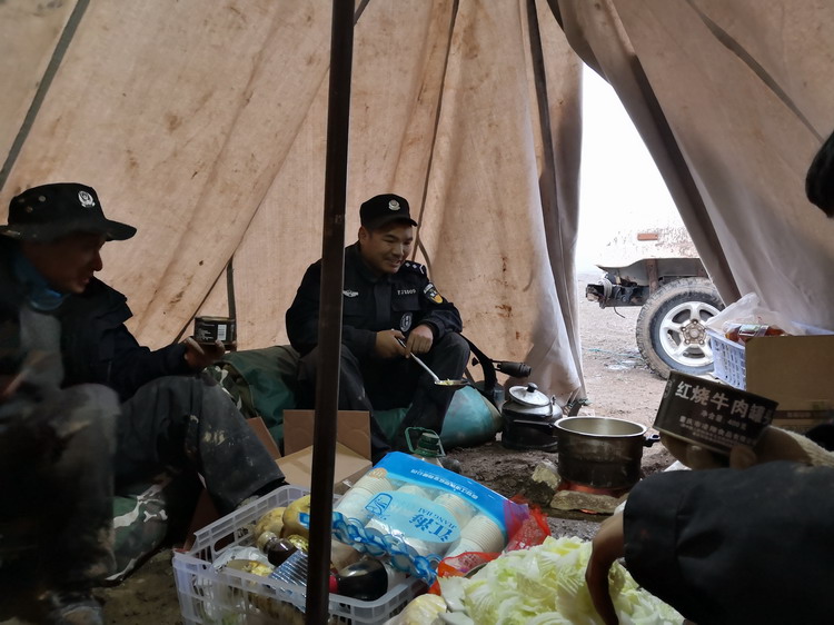 2022年底,輔警尼瑪扎西跟隨巡山隊(duì)伍再次出發(fā)。冬天的可可西里氣溫最低將近零下40℃,他帶的餅子和饅頭凍得像石頭一樣硬,渴了就喝舀來的溪水和化開的雪水,到了晚上,他們就在已至零下的車?yán)锲D難睡下,凍得受不了,就出來走幾圈,發(fā)發(fā)汗,再回到車?yán)飻D在一起取暖。