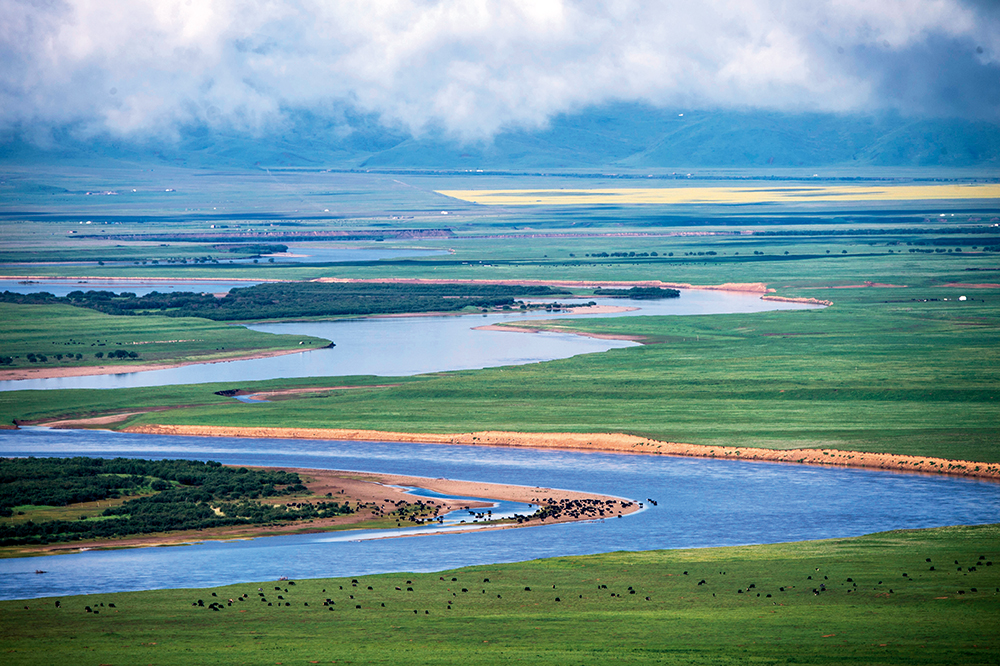 牛羊徜徉在四川若爾蓋濕地國家級自然保護區(qū)里(2022年7月25日攝)。新華社 江宏景 攝