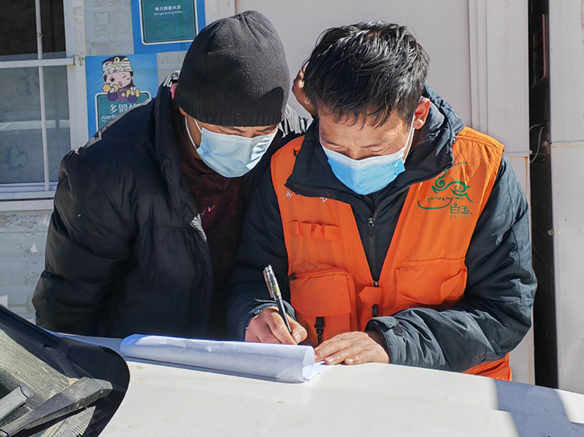白瑪稱來(右)對過往駕乘人員進(jìn)行認(rèn)真登記