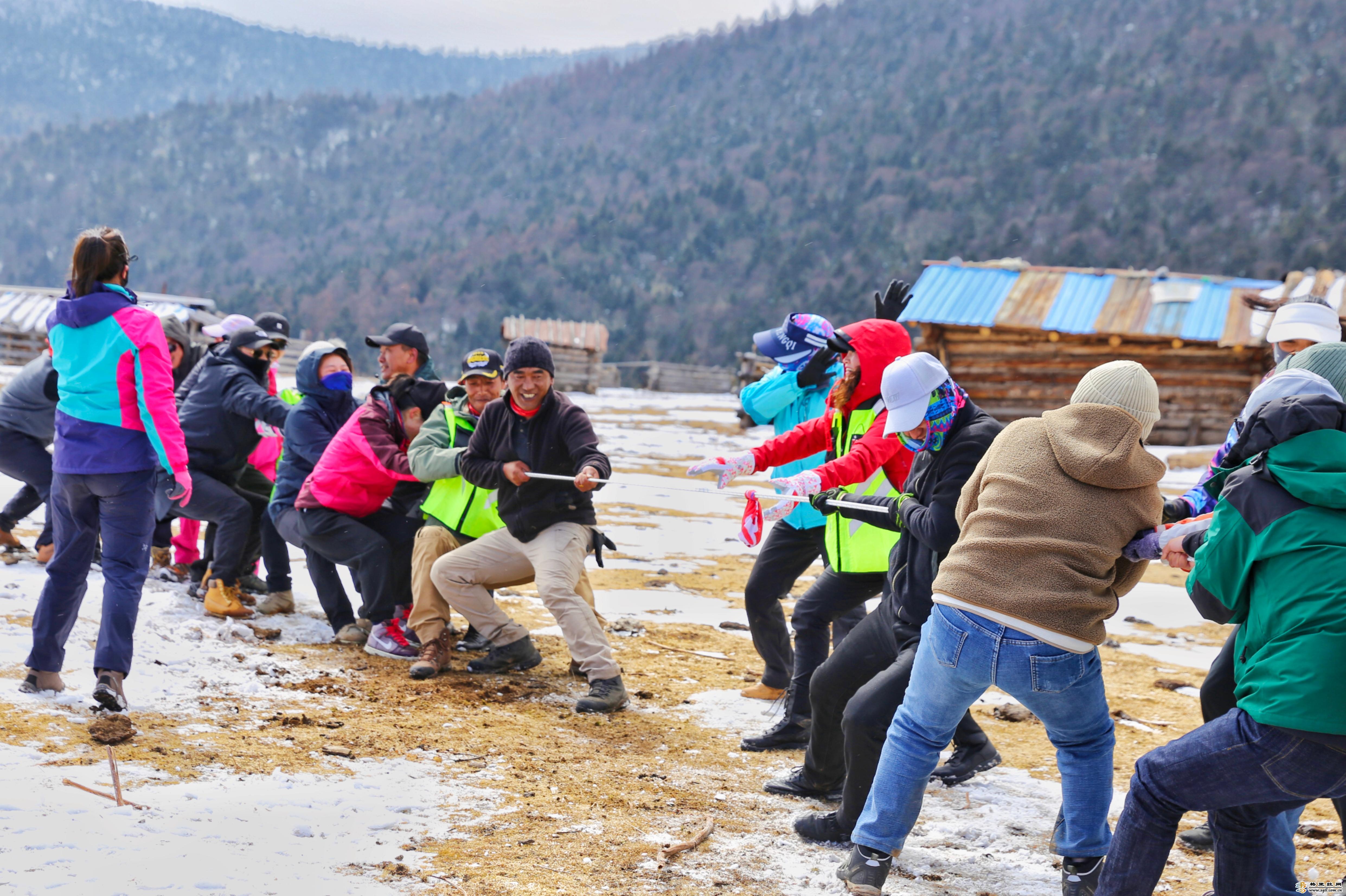 陽(yáng)光下,大家歡快地打雪仗、拔河、跳鍋莊,不亦樂(lè)乎……