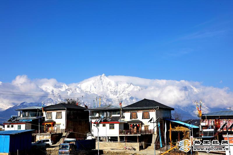 德欽縣升平鎮(zhèn)霧濃頂小組藏式民居與雪山相映成趣